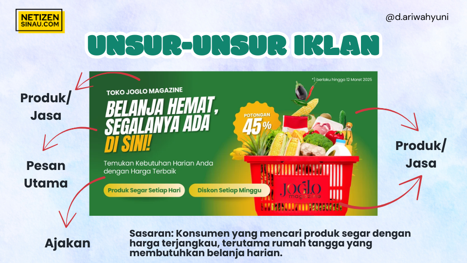 - Produk/Jasa: Apa yang ditawarkan dalam iklan.